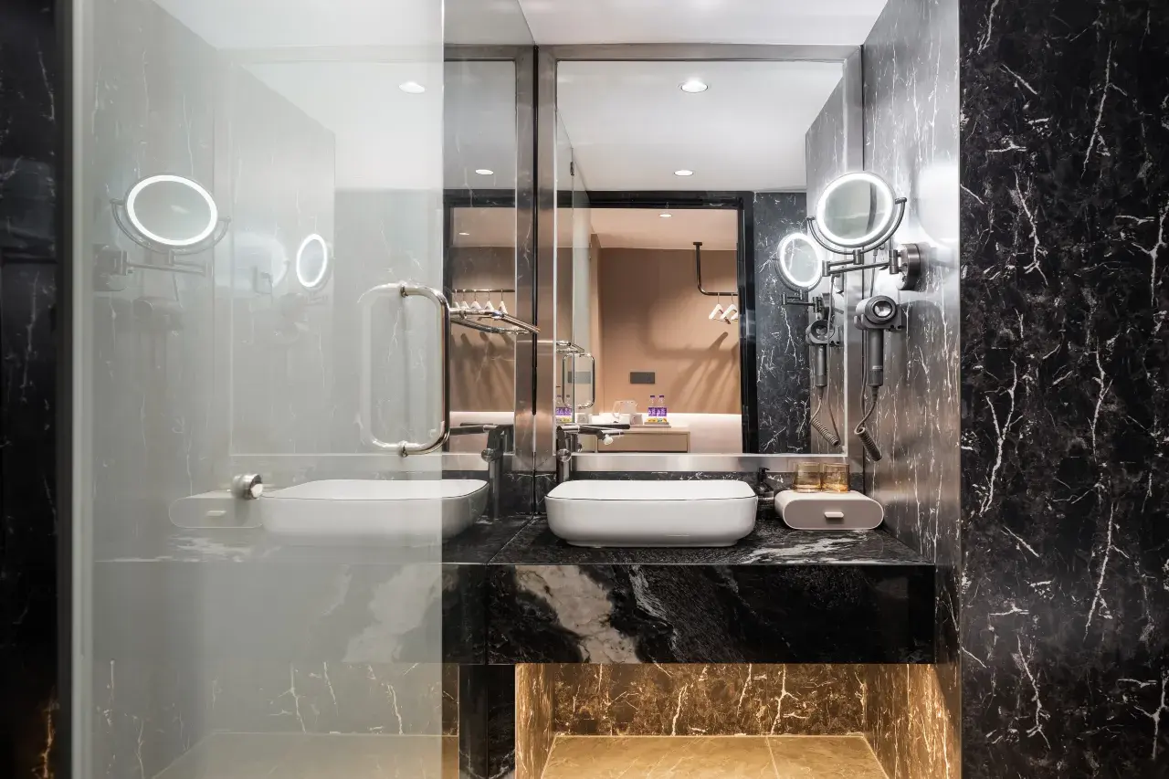 为了确保最高质量的休息,房间配备了…… 1.8米宽双人床零压力床垫, 经过专门设计,旨在提供无重力睡眠体验。结合 自动遮光窗帘 以及现代 智能马桶, 房间的每一个细节都经过精心设计,旨在提供无缝衔接的高端酒店服务体验。.